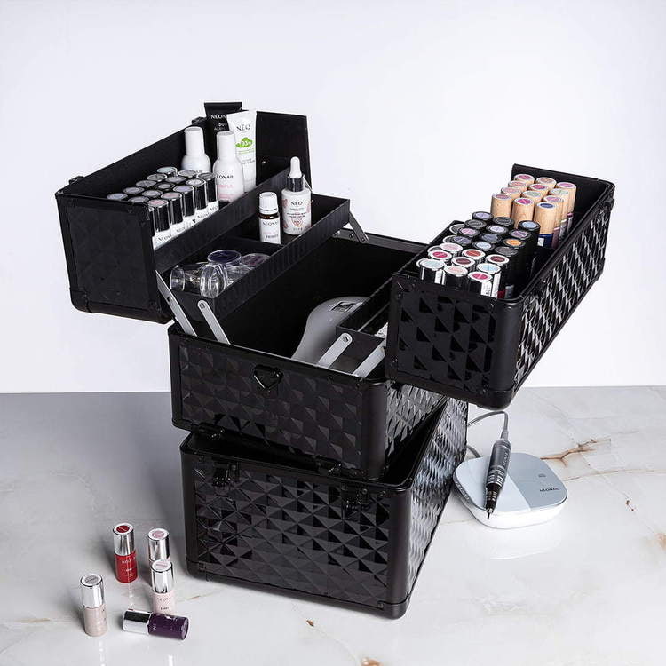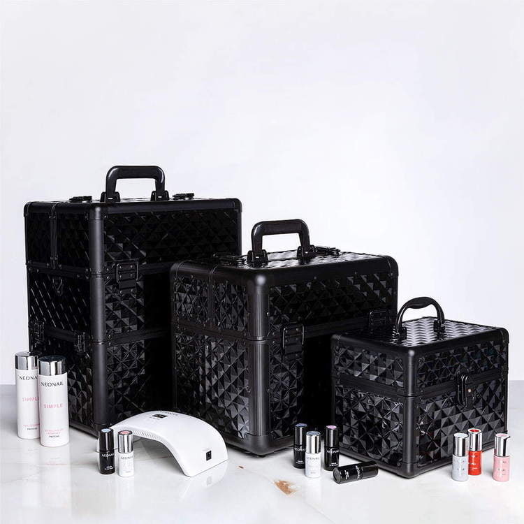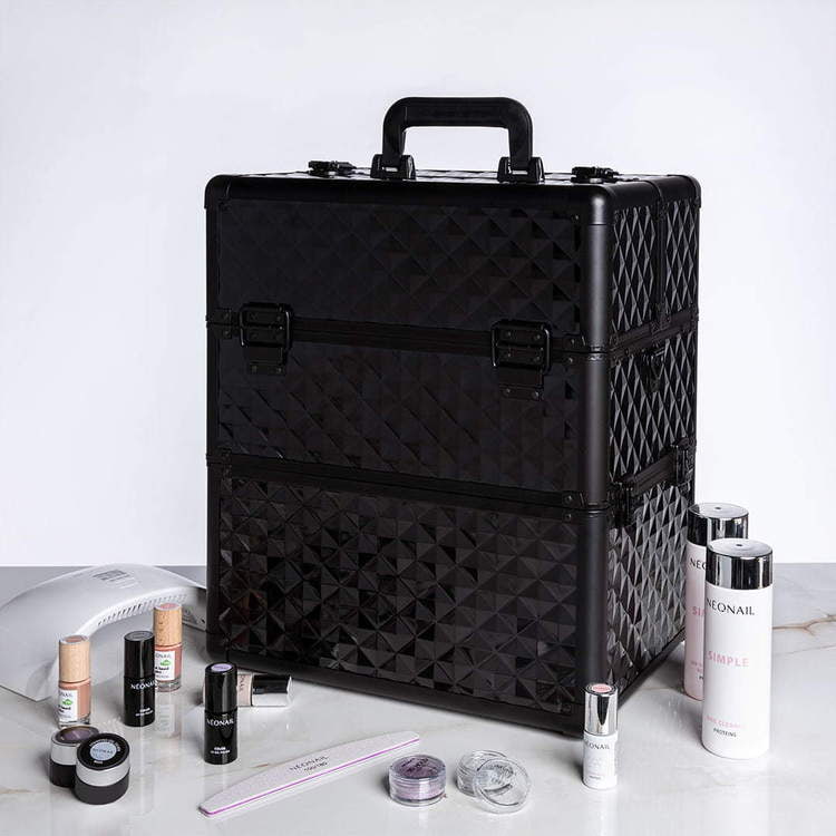 Un transport confortable des cosmétiques sans risque d’endommagements est essentiel pour le travail d’esthéticienne mobile. Si vous tenez à vous déplacer facilement avec tous vos produits et outils, optez pour un coffre de taille L de NEONAIL ! Un grand coffre à cosmétiques non seulement facilitera le transport de tous produits nécessaires mais aussi deviendra un élément décoratif de votre intérieur. C’est un coffre noir à design très chic qui décidément attire l’attention. Optez pour un coffre noir de taille L de NEONAIL qui est très esthétique et professionnel !