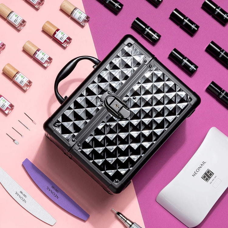 Cherchez-vous une solution idéale pour stocker vos produits préférés pour la manucure semi-permanente ? Ou peut-être, vous êtes esthéticienne mobile et vous tenez à transporter vos cosmétiques de manière confortable et certaine ? Optez pour un coffre noir à cosmétiques de NEONAIL qui facilitera votre travail ! Ce coffre à cosmétiques se distingue par son élégance - les ferrures dont il est équipé sont fabriquées à partir de matériaux de la meilleure qualité et son intérieur est tapissé de tissu élégant. Stockez vos produits préférés pour la manucure semi-permanente dans un coffre à cosmétiques élégant qui deviendra un élément de décoration de votre intérieur !